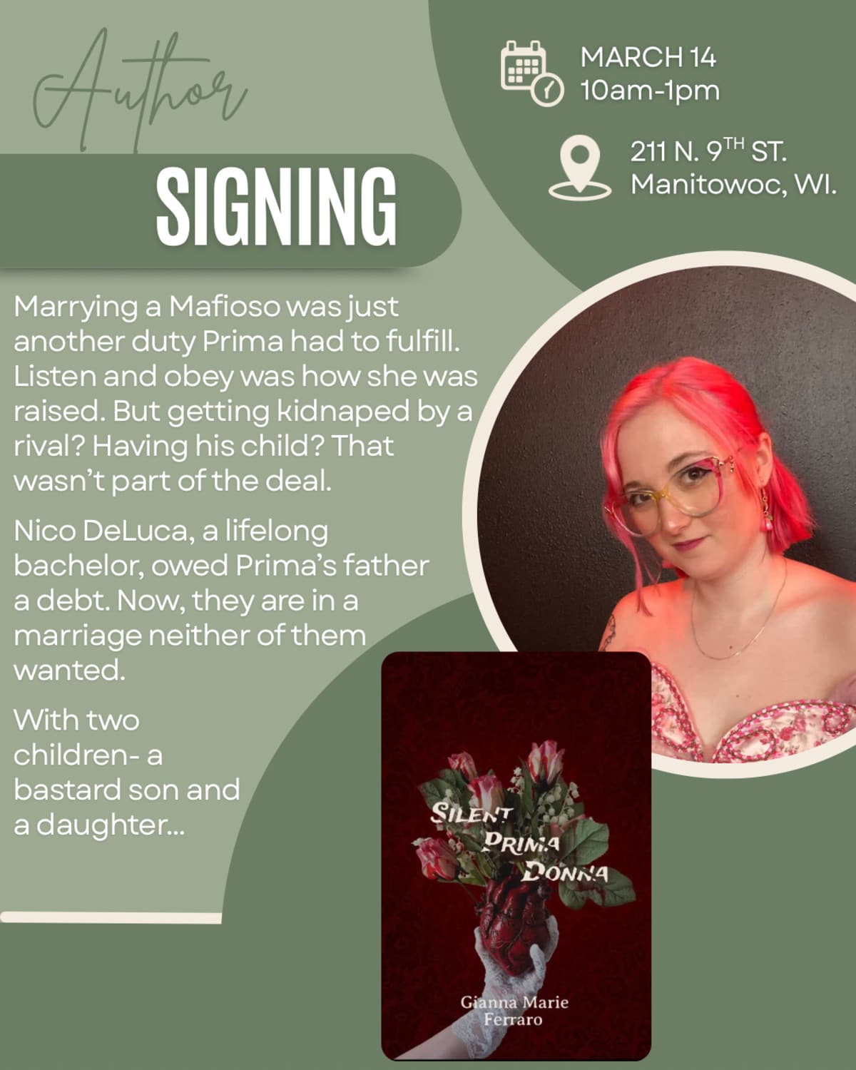 Come join me at the Nook for a book signing in March. Hope to see you there!